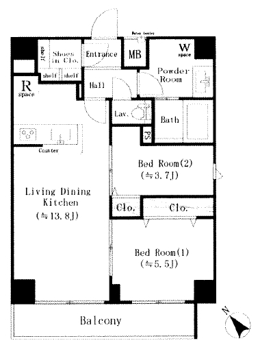 2LDK 55.08m2 |